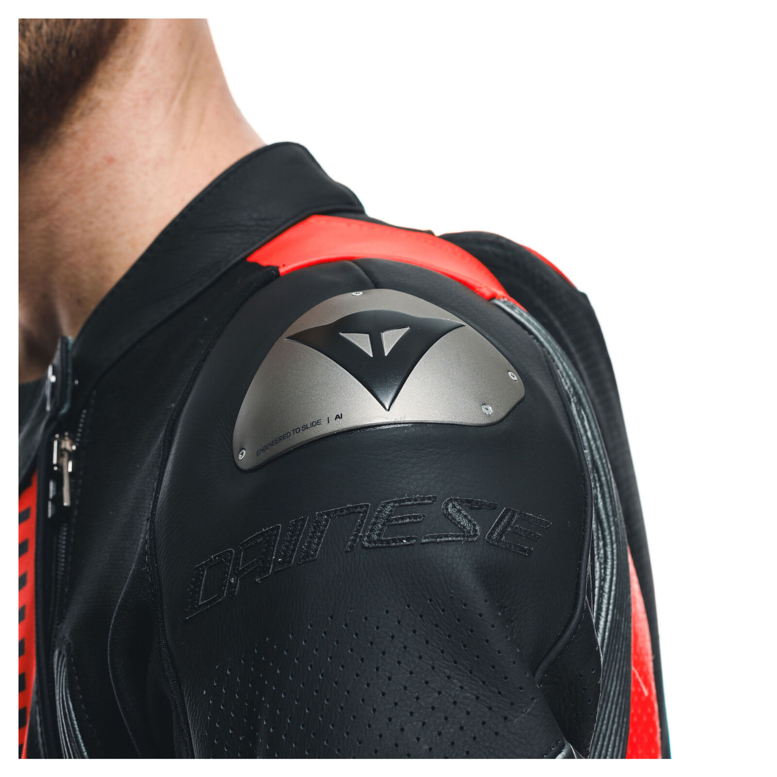 The detachable D-Tec Racing Core interior further increases comfort and aerodynamics, as this removable and washable inner layer houses the composite shoulder protectors – now even more sensitive to the body's micro-movements – and the Pro-Shape 2.0 hip protectors.