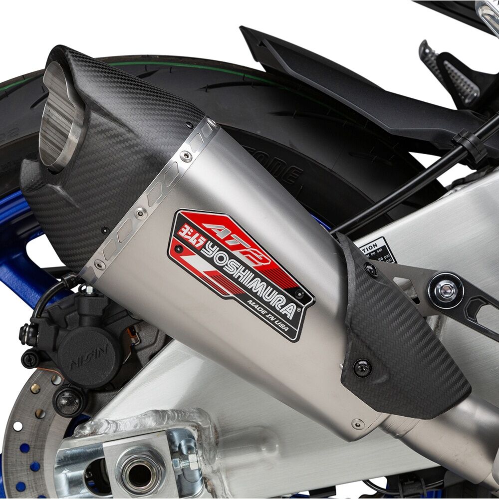 Our AT2 Street Series slip-on adds exceptional styling that compliments the MT-10 from every angle. This AT2 muffler is Works Finished to perfection and of course has that Yoshimura rumble that is unmistakable.