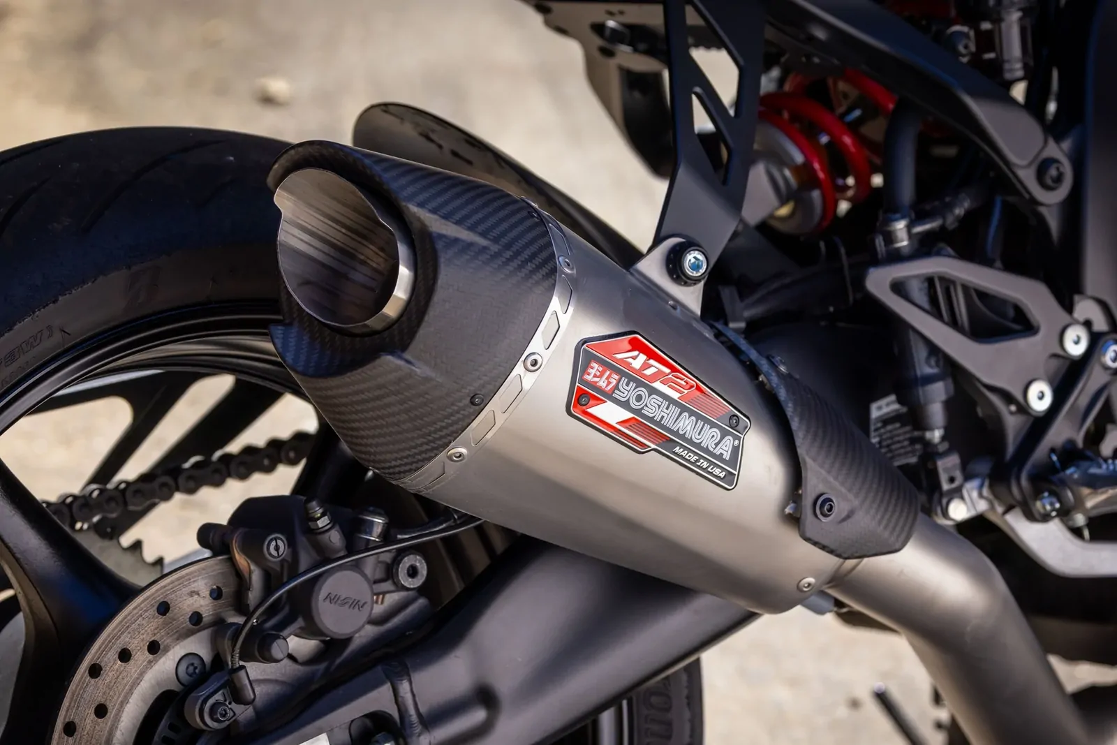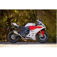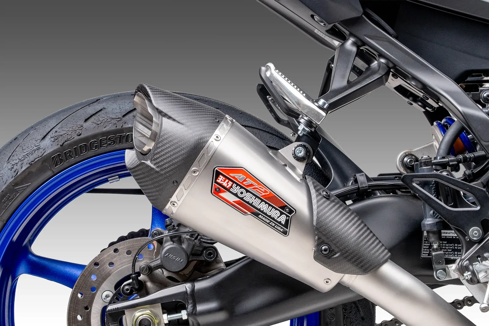 Aesthetics and sound are second to none when it comes to Yoshimura. A brilliant Works Finish from the headers to the tail pipe provides a look that is beautiful, yet durable. A custom carbon fiber heel guard finishes the look. If your familiar with the sound of the AT2 and the CP3 engine platform, you know the one of a kind exhaust note that emits from the faceted end cap is insane!